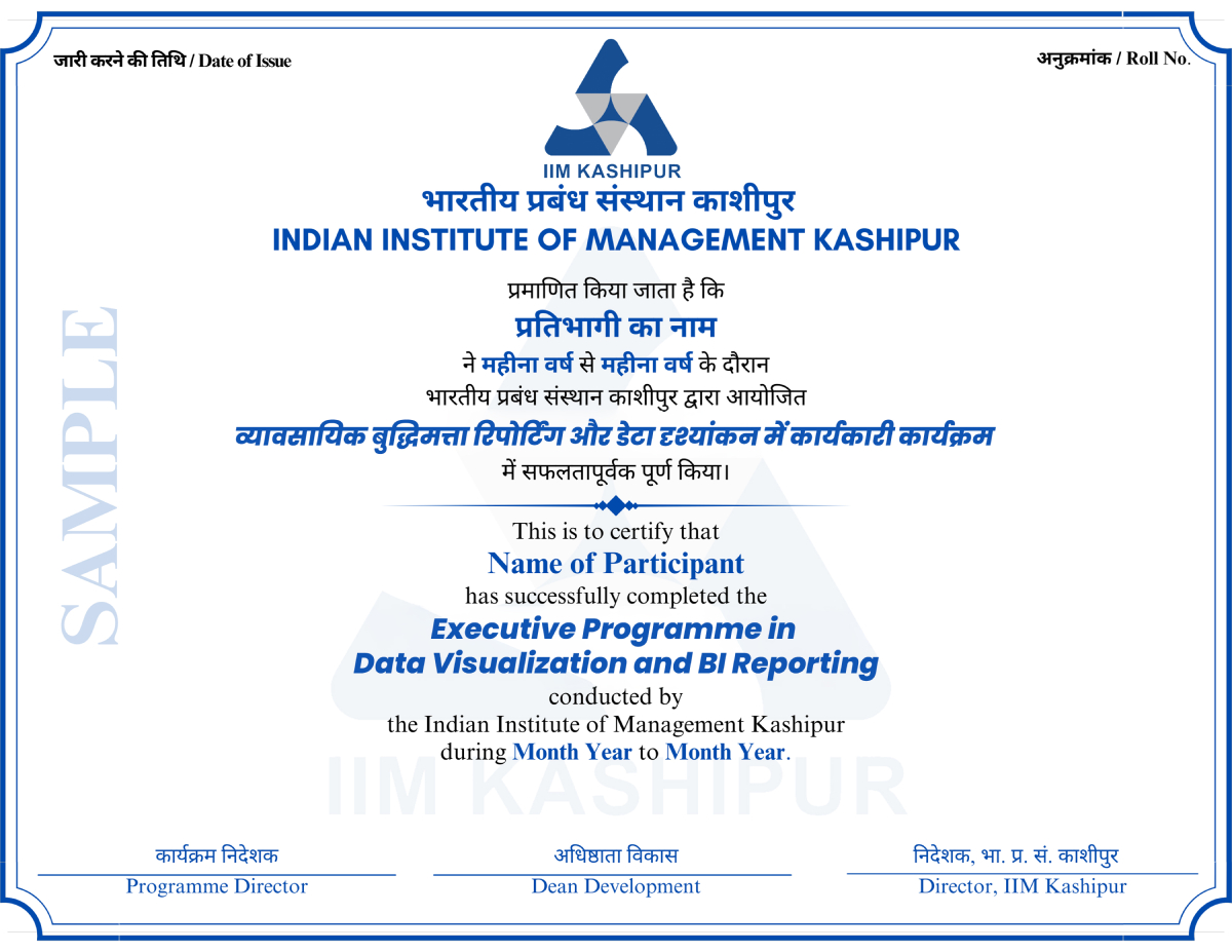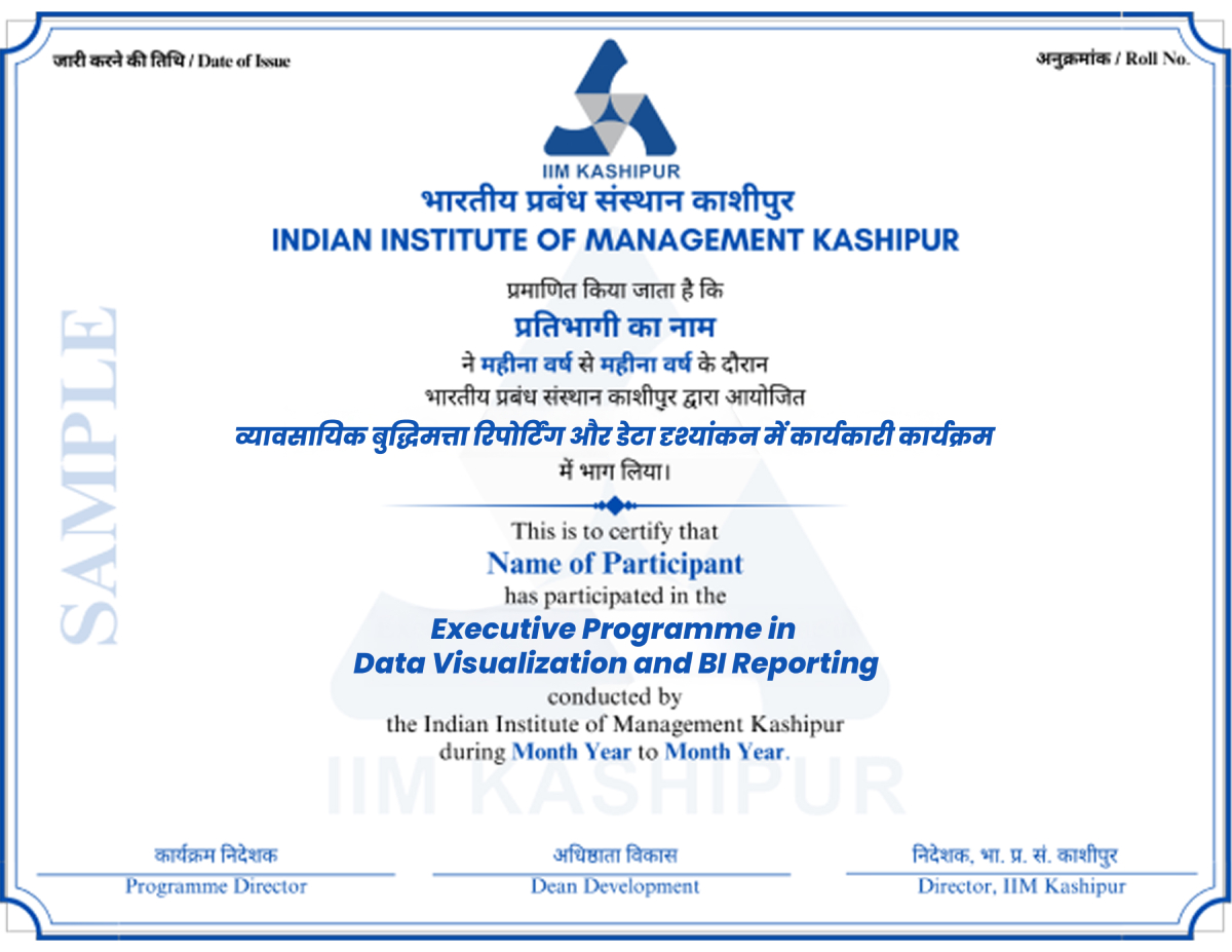 Yes. Upon successful completion, participants are awarded a prestigious certificate from IIM Kashipur, validating their expertise in business intelligence, dashboarding, and Power BI reporting.